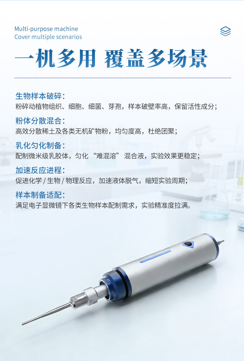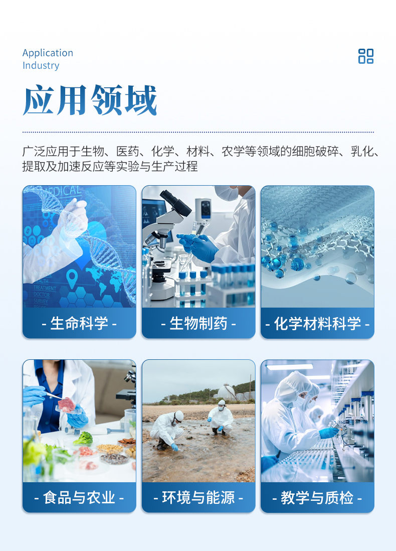 超声波破碎仪能用于粉碎动、植物细胞、细菌、牙孢或组织。分散稀土和各类无机矿物粉。
