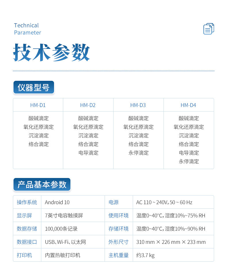 仪器采用先进的Android 10智能操作系统与7英寸高清触摸屏,操作直观流畅。核心性能卓越,滴定分析重复性≤0.2%,支持电位、pH及温度等多参数实时监测与补偿。仪器内置专业的常规滴定与专项滴定双模式,既可灵活满足研发需求,又能高效完成标准检测,直接输出样品含量结果。凭借高精度流体控制系统、海量数据存储、完备的审计追踪功能以及多种数据接口,本系列仪器成为实验室质量控制和科学研究的高效分析平台。