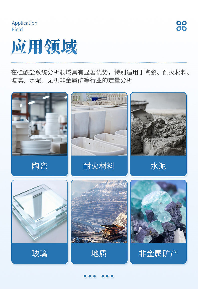 | 二氧化硅 | 0.1-99% | 三氧化二铝 | 0.1-99% | 三氧化二铁 | 0.1-99% | 二氧化钛 | 0.1-99% |