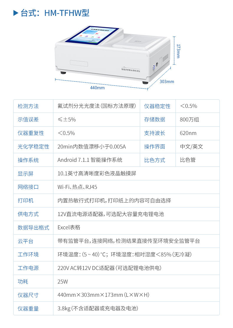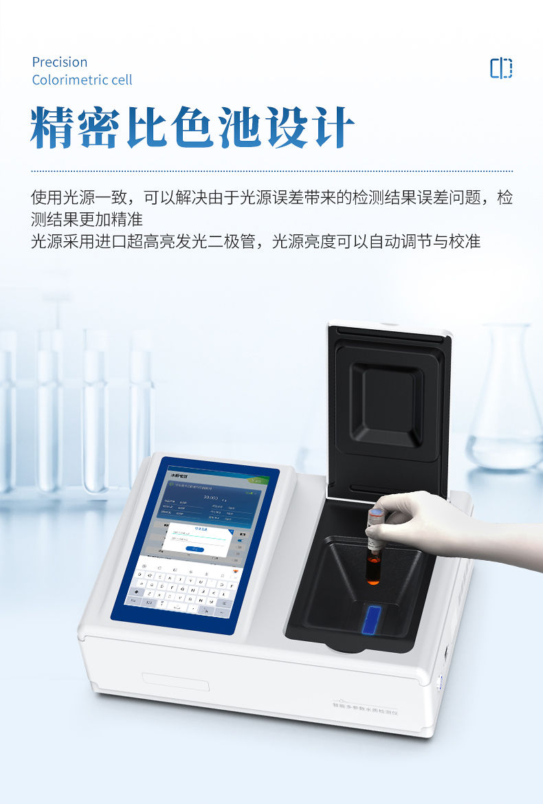 【产品简介】台式,10.1英寸彩色液晶触摸屏,精密比色池设计,440x303x173mm,3.8kg