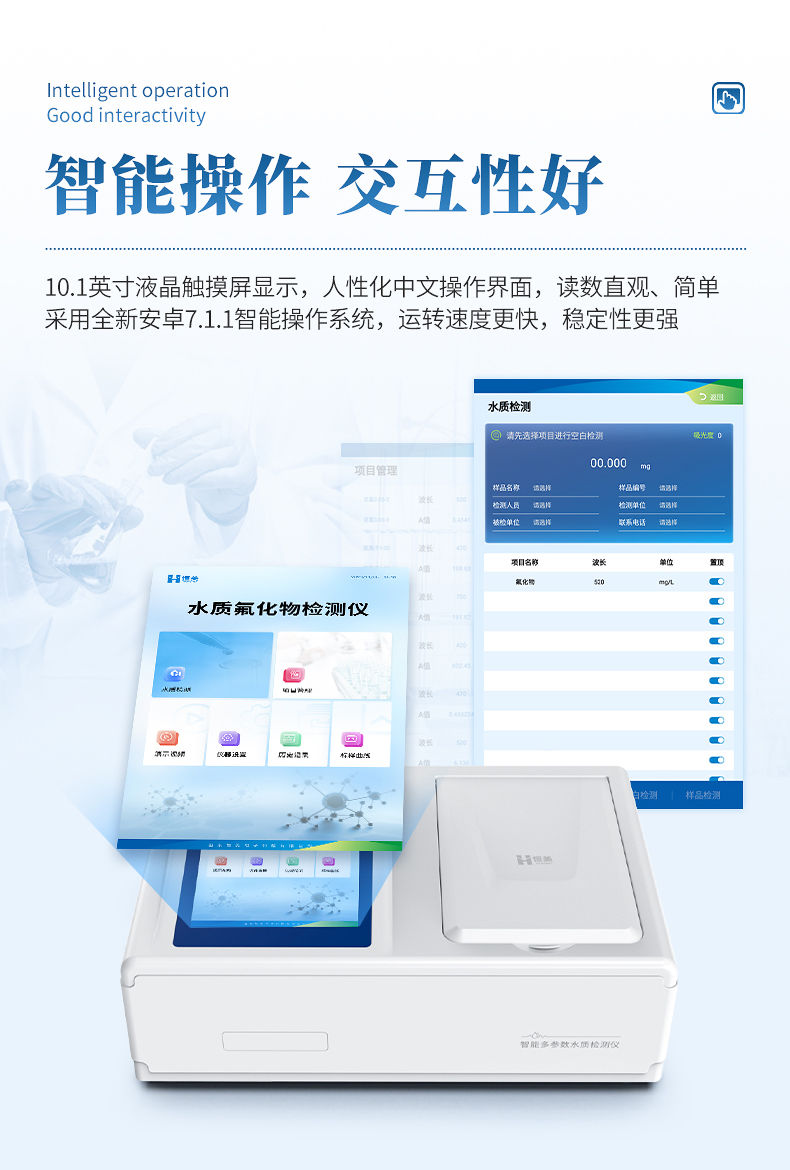 本仪器是快速检测水中氟化物的专业工具,主要服务于环境监测、工业自查、公共卫生保障及科研应急等多类场景。它能够帮助环保巡查人员对河流、湖泊及饮用水源地水样进行筛查;助力电解铝、半导体、电镀等工厂的质检人员对工艺用水与废水排放口实现快速合规自查;协助疾控中心及水厂工作人员评估管网末梢水与农村饮用水的氟化物安全水平;同时也为野外地质调查或突发性水质事件的应急监测,提供即时的数据支持。