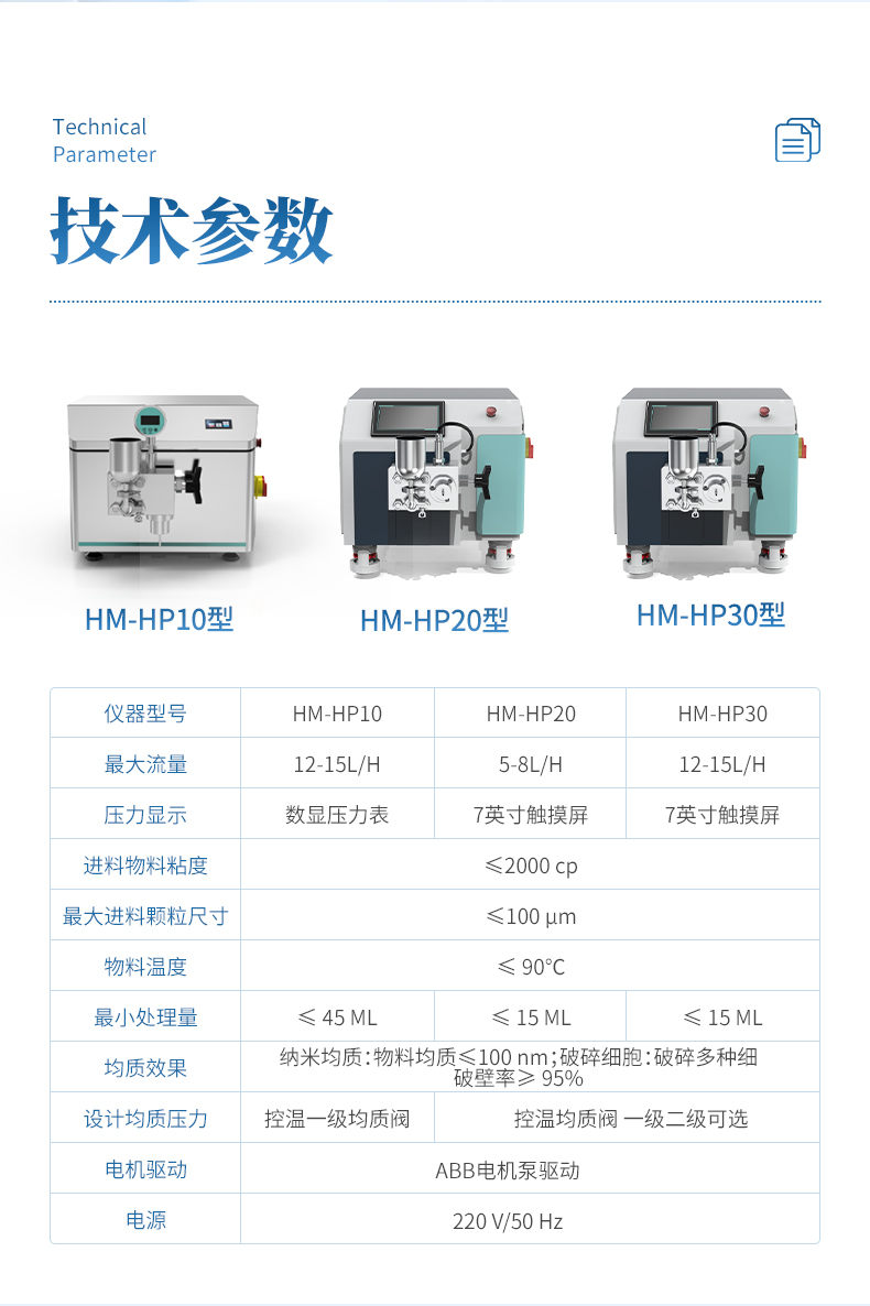 | 处理产品 | 纳米乳液、食品乳化、混悬剂、脂质体、脂肪乳 |