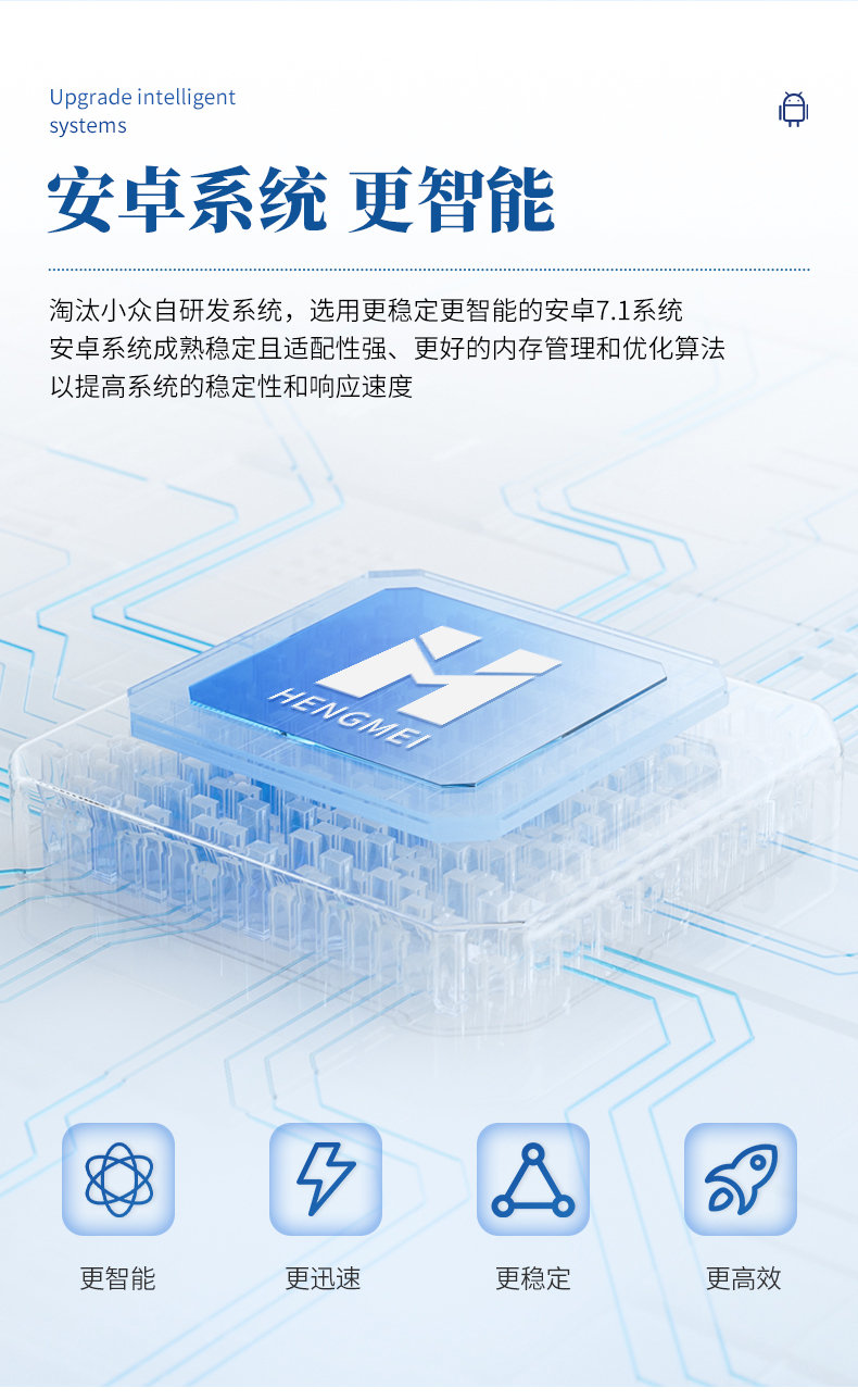 1、采用全新安卓7.1.1智能操作系统,人性化中文操作界面,运转速度更快速,稳定性更强。