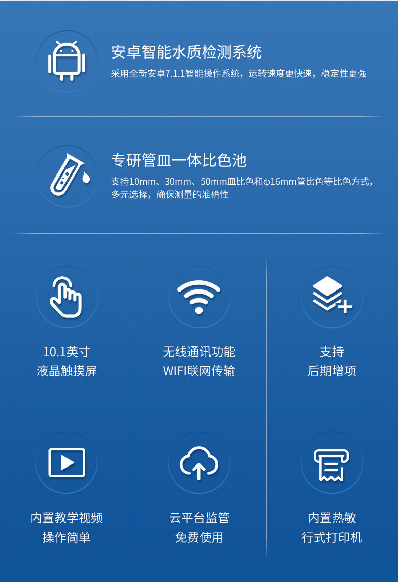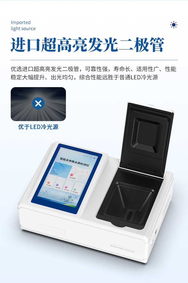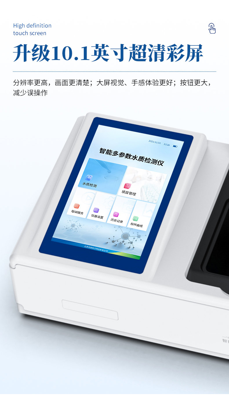 本仪器主要检测水中硫酸盐含量指标,兼具智能数据分析功能,图表、列表显示数据,分析一目了然;高清晰度彩色液晶触摸显示屏,Android智能操作系统,中文显示界面,中英文键盘,人性化操作,使用更简单。