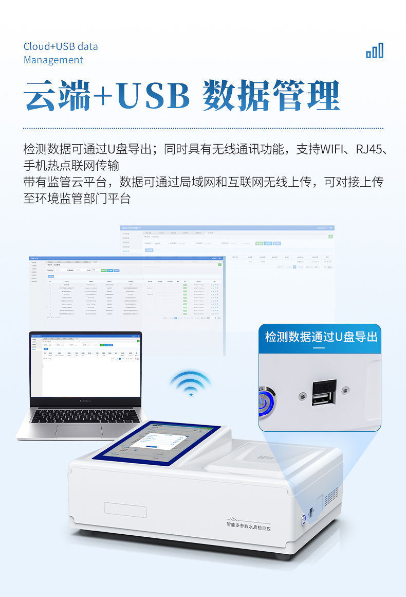 9、仪器带有监管云平台,数据可通过局域网和互联网无线上传,亦可对接上传至环境监管部门平台。