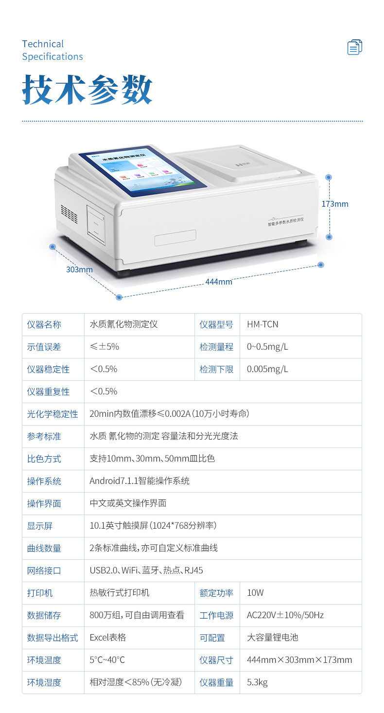 【产品简介】检测水质氰化物和总氰化物含量指标,兼具智能数据分析功能,图表、列表显示数据