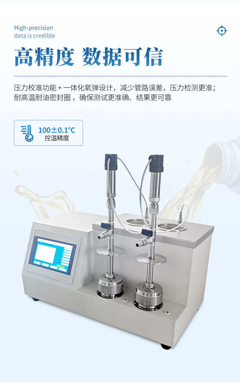 (5)仪器具有设定氧化时间功能,根据国家标准如果样品出现缓慢氧化,到达设定时间后,仪器自动计算出该时间下的最高到最低压力降,作为实验数据。