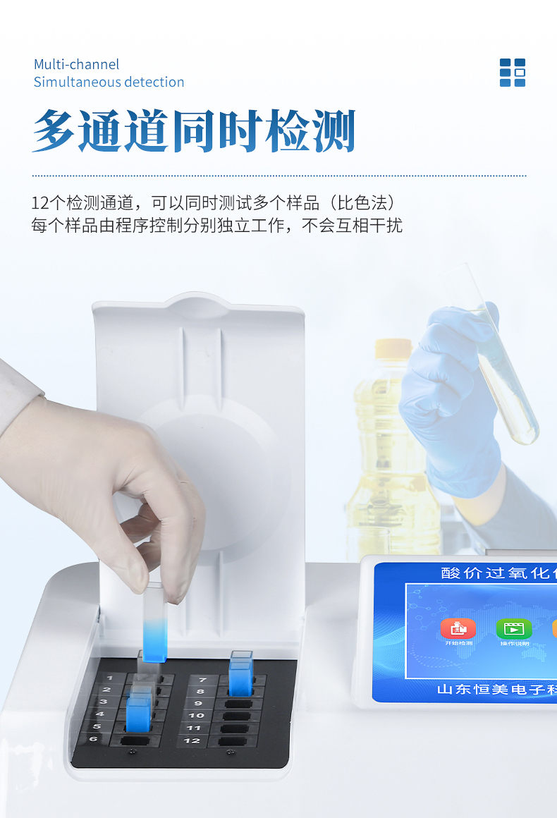 过氧化值检测仪为集成化油品快速检测分析设备,能够快速检测食用植物油、食用猪油、花生油、葵花油、米糠油、食品、肉制品中的过氧化值含量;通过检测可确定植物油是否符合国家标准或是否为劣质油、地沟油等。仪器预留其他项目检测程序和端口,根据日后需求可方便的自主增加检测项目。日后可升级为检测水产品、面制品的综合类型仪器。