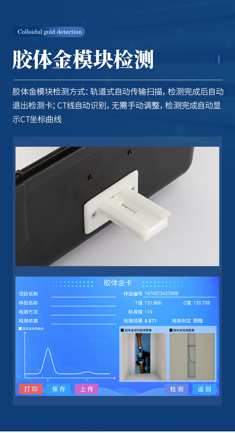 8、打印机采用串口5v打印,可选择手动打印或者自动打印,三分钟出打印结果,打印格式为检测人姓名、吸光度差值、检测时间、检测机构、样品名称及结果判定。