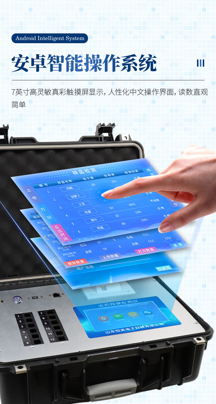 【产品简介】智能安卓操作系统,内置国家限量标准,24通道检测