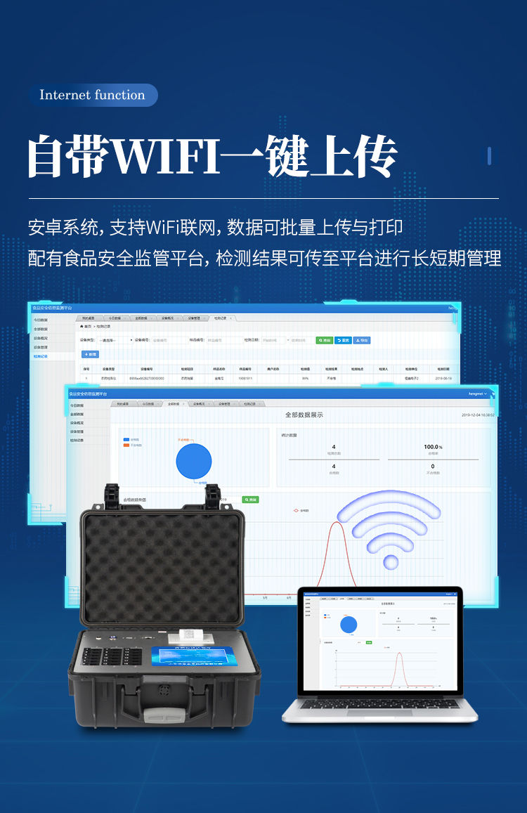 6、仪器具有wifi联网功能,可将数据快速上传电脑,进行数据管理与统计,4G信号GPRS远传功能,可插手机卡实现数据远传平台,。