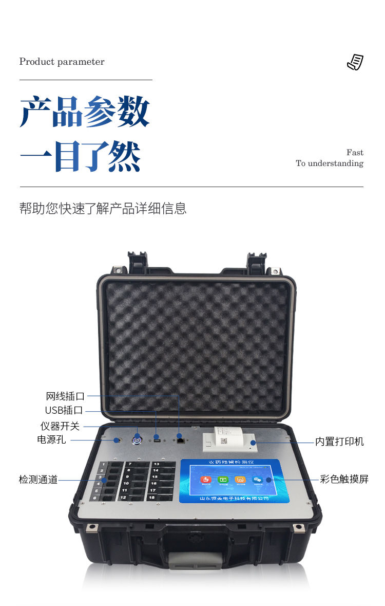 5、检测通道:24个检测通道,可以同时测试多个样品,循环检测,即放即检,每个样品由程序控制分别独立工作,不会互相干扰。
