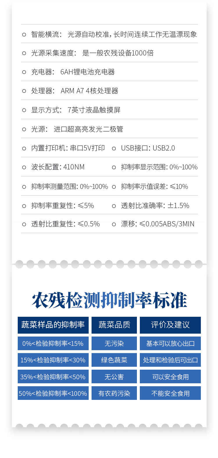 *抑制率测量范围:0%~100%;