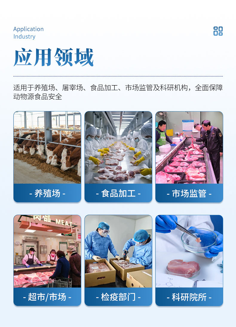 该兽药残留检测仪适用于猪、鸡、鸭、羊、牛、牛奶等畜禽肉产品中兽药残留,包括抗生素类残留、瘦肉精激素类残留和水产品有毒有害物质的现场快速筛查定及定性定量检测。 该多功能兽药残留检测仪为集成化肉品安全快速检测分析设备,可广泛应用于畜牧养殖场、屠宰场、食品肉产品深加工企业、食药监局、检验检疫部门、卫生部门、高教院校、科研院所、农业部门等单位使用。