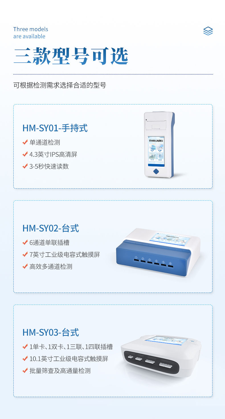 11、检测时间:< 5秒 (单卡及多联卡);可对样本进行胶体金定性/半定量检测。
