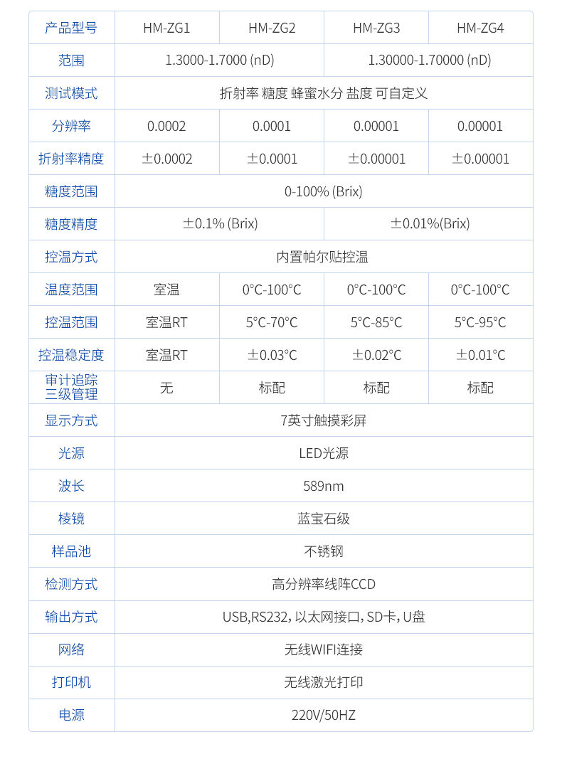 【产品简介】折射率精度:±0.0002 ;Brix精度:±0.1%;控温范围:室温;审计追踪/三级管理:无