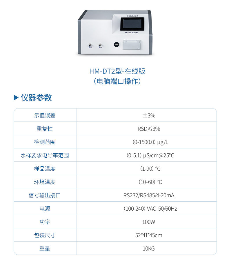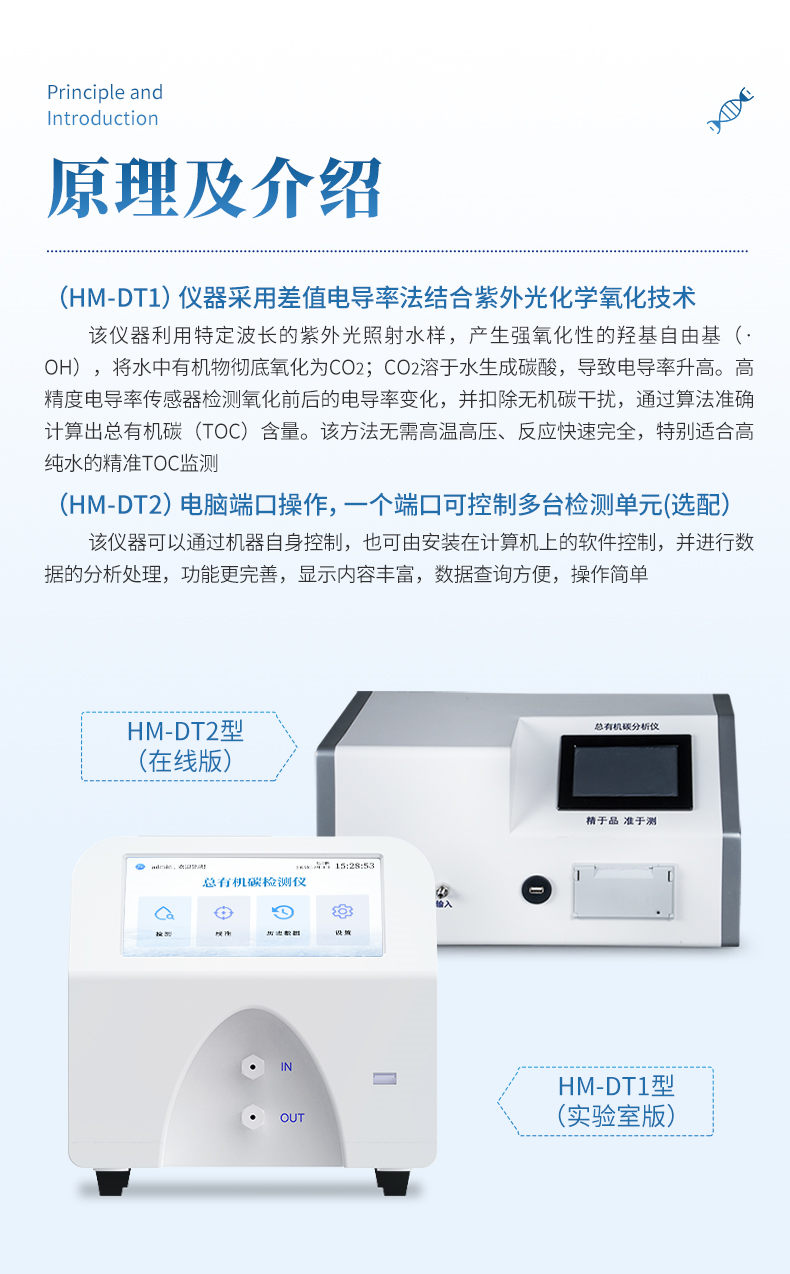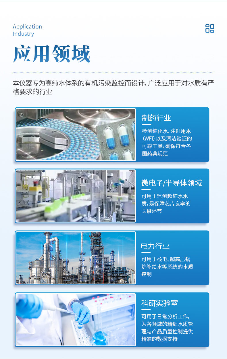2.半导体行业、电厂、科研单位、制药行业、化工行业等超纯水TOC的检测 ;