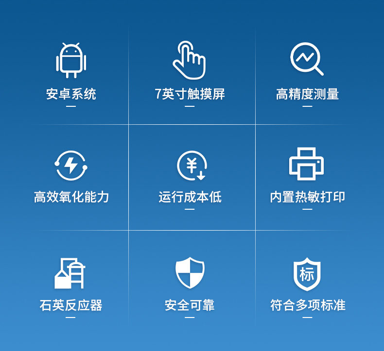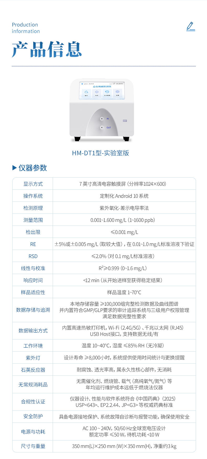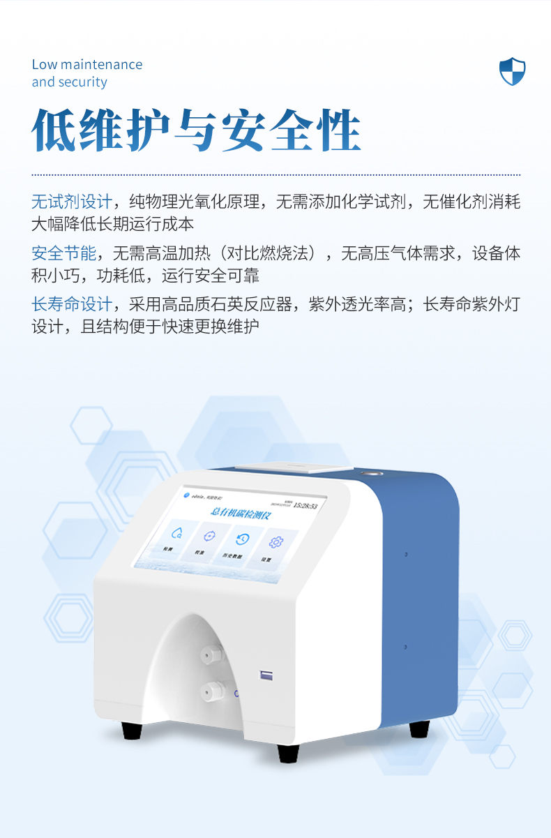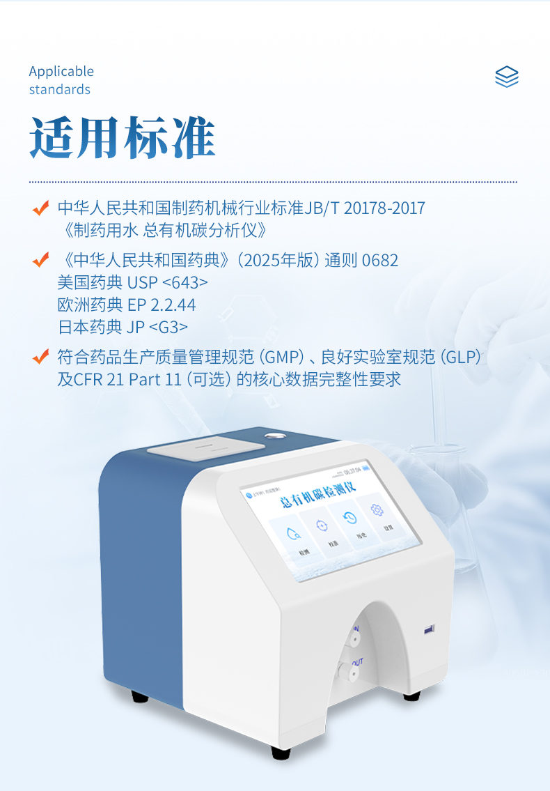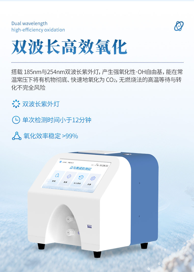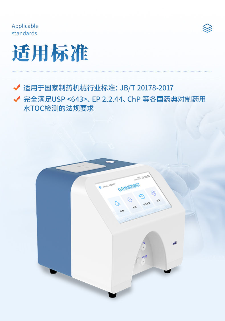 1.检测制药工业中纯化水、注射用水和高纯水中总有机碳的浓度;