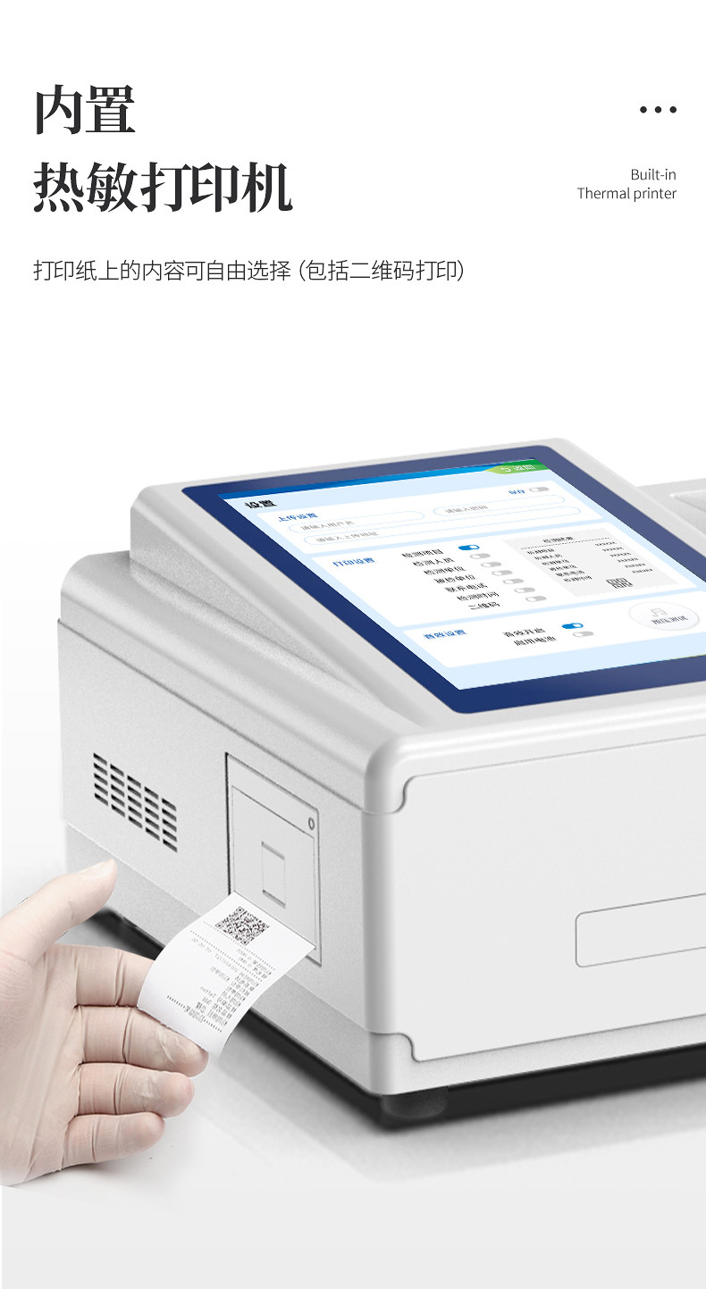 9、仪器带有监管云平台,数据可通过局域网和互联网上传,亦可对接上传至环境监管部门平台。110、内置热敏行式打印机,打印纸上的内容可自由选择(包括二维码打印);