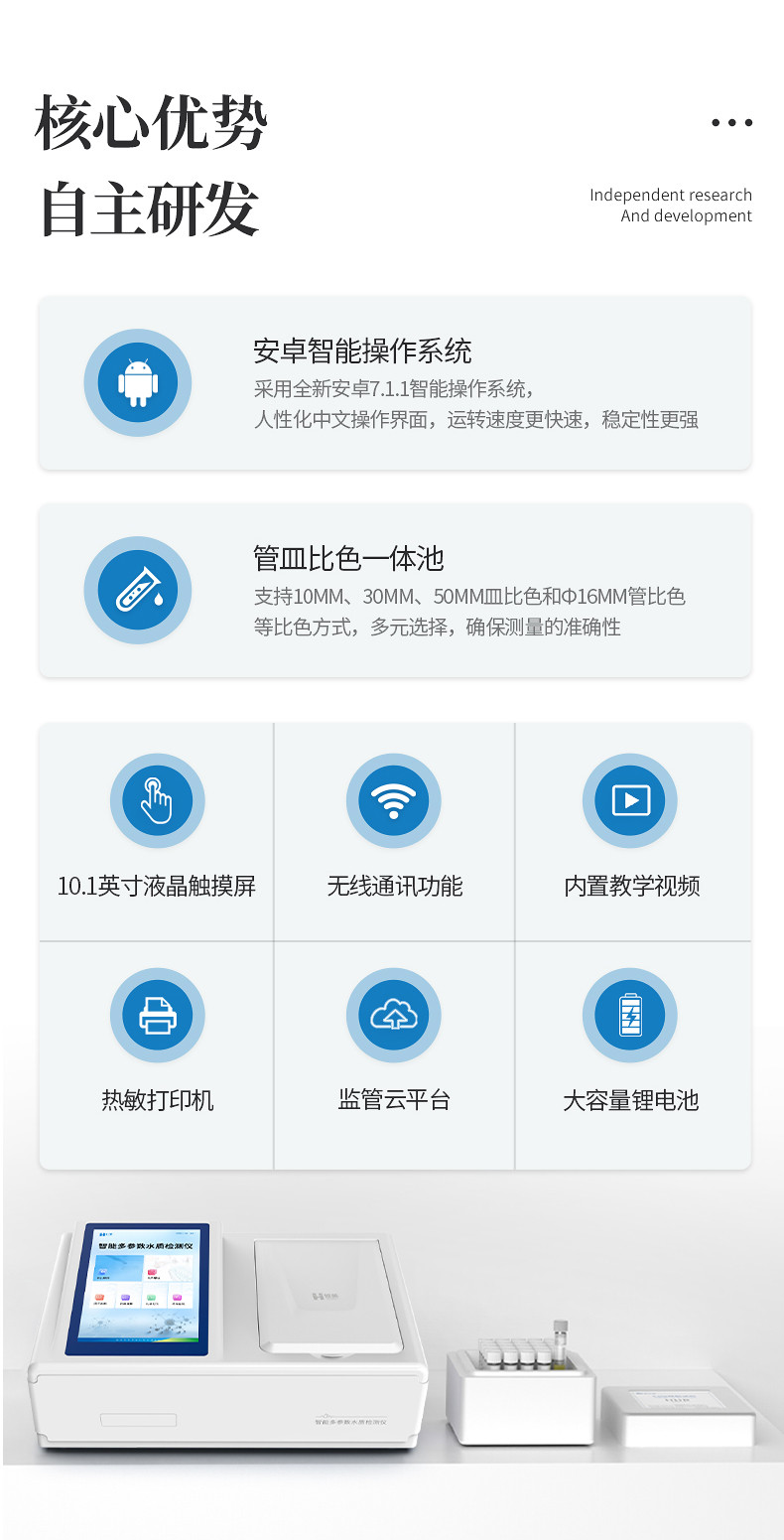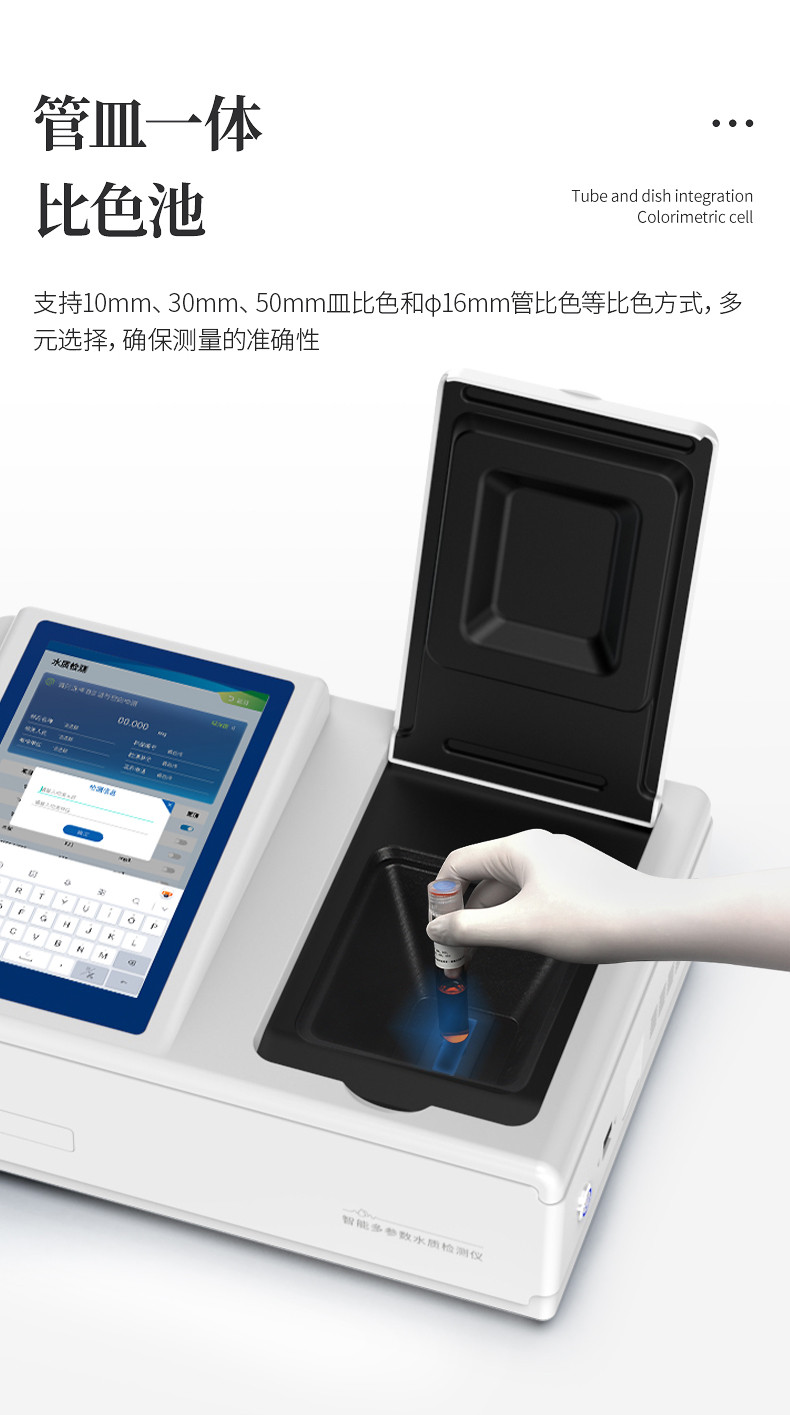 5、支持10mm、30mm、50mm皿比色和φ16mm管比色等比色方式,多元选择,确保测量的准确性;