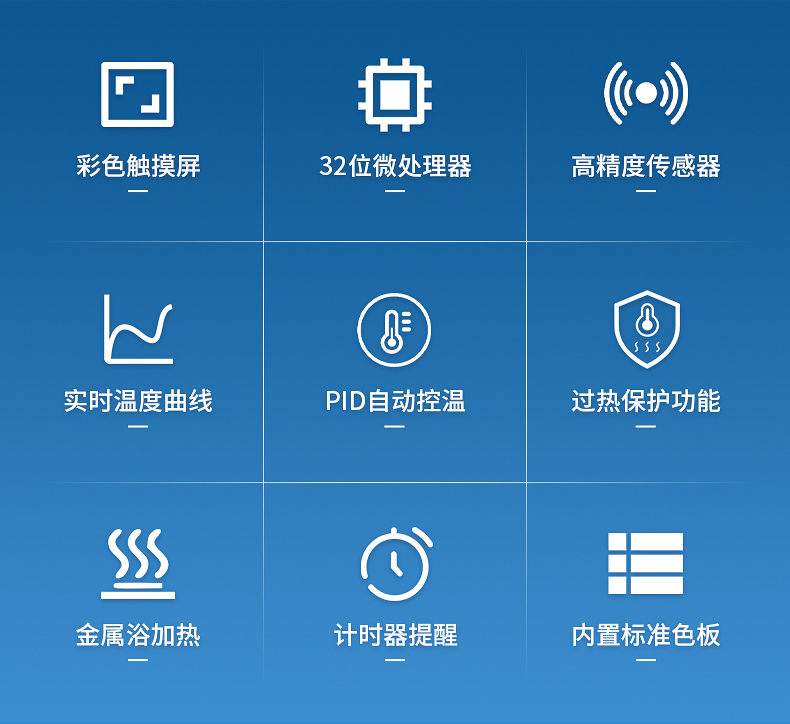 【产品简介】7英寸彩色触摸屏,PID自动控温,金属浴加热,带计时器提醒