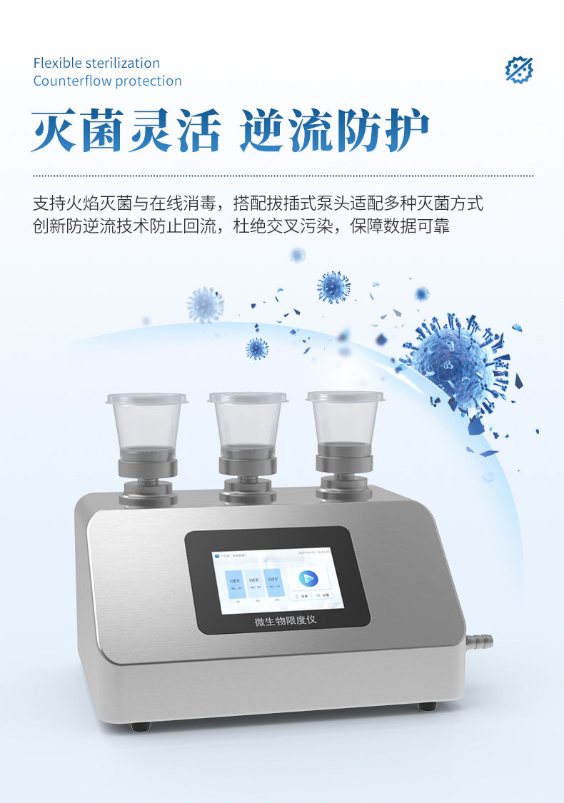 微生物限度过滤系统是依据《中国药典》及相关行业标准设计制造的专用微生物检测设备。该设备通过负压抽滤方式将供试液中的微生物截留于滤膜上,经培养后形成可见菌落,并通过计数准确测定样品中的含菌量。适用于药品、食品、化妆品、化工等行业的微生物限度检查。