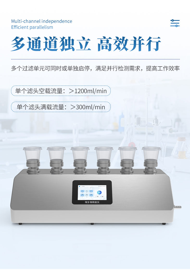 5. 多通道独立控制:多个过滤单元可同时或单独启停,满足并行检测需求,提高工作效率。