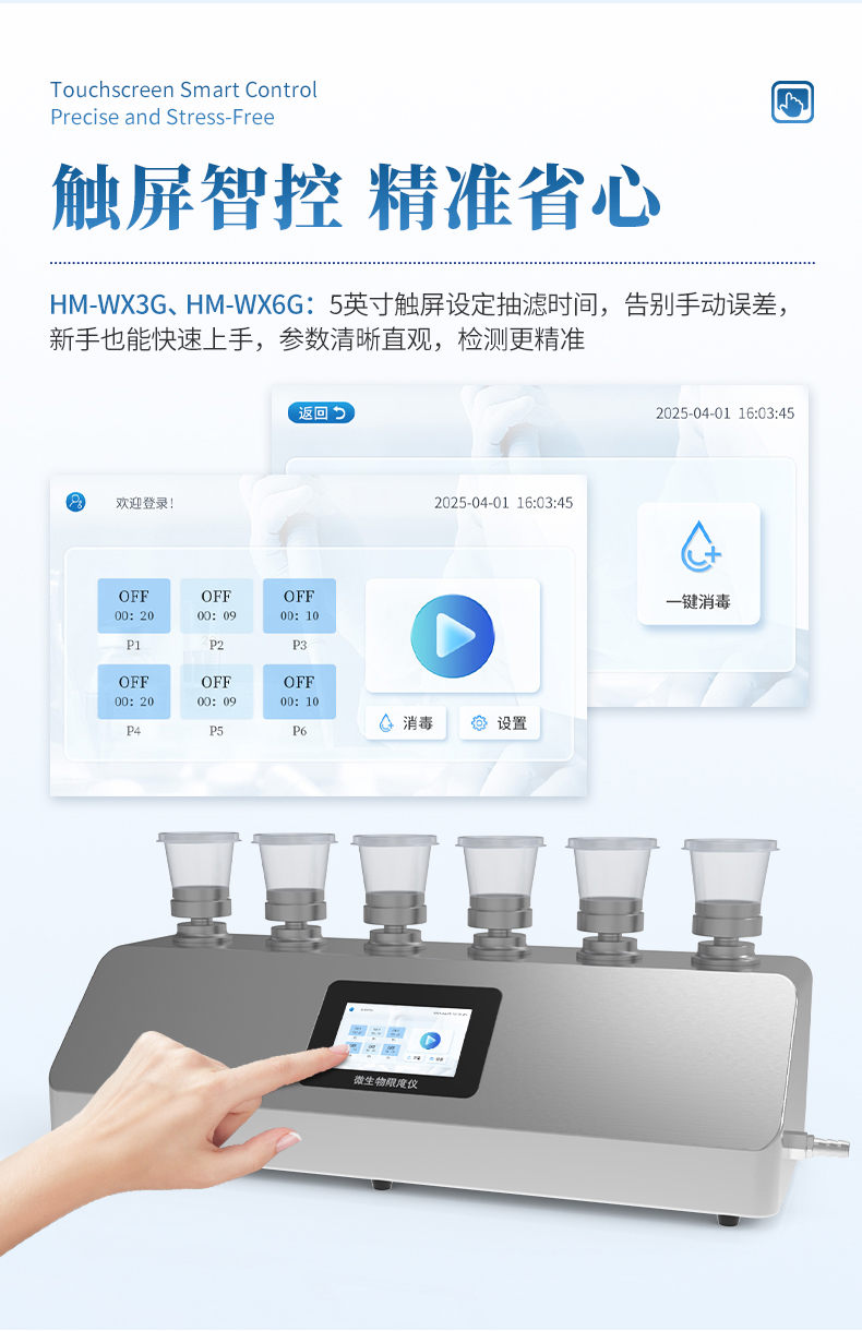 1. 抽滤时间可设定:支持抽滤时间参数设定,有效避免因人为操作差异导致供试液抽滤不充分,提高检测一致性。