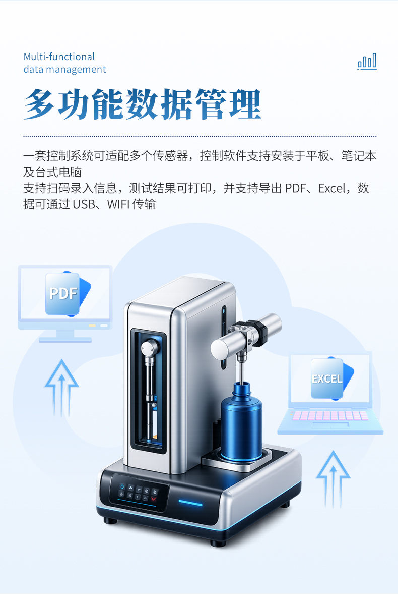 l 支持扫码枪信息录入,测试结果可使用微型或桌面打印机打印,可导出pdf、excel表格等格式,可通过USB、WIFI等方式传输