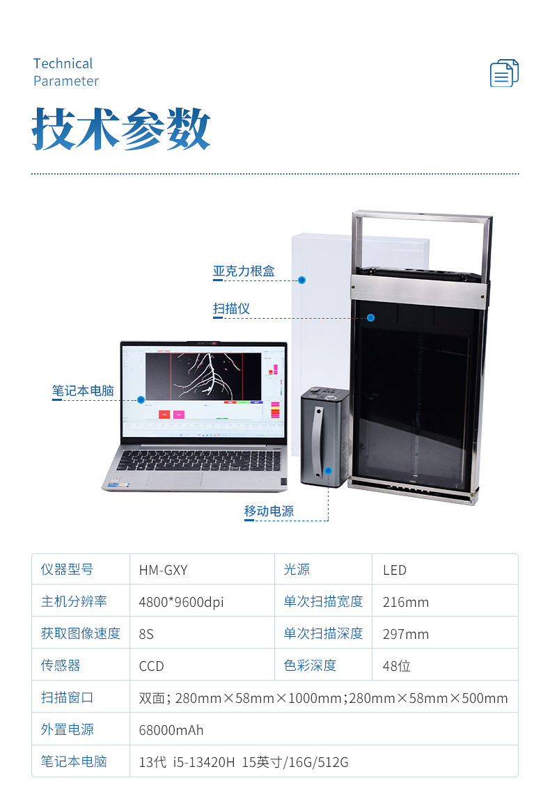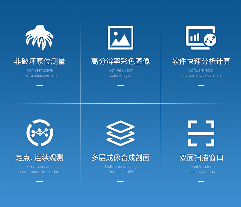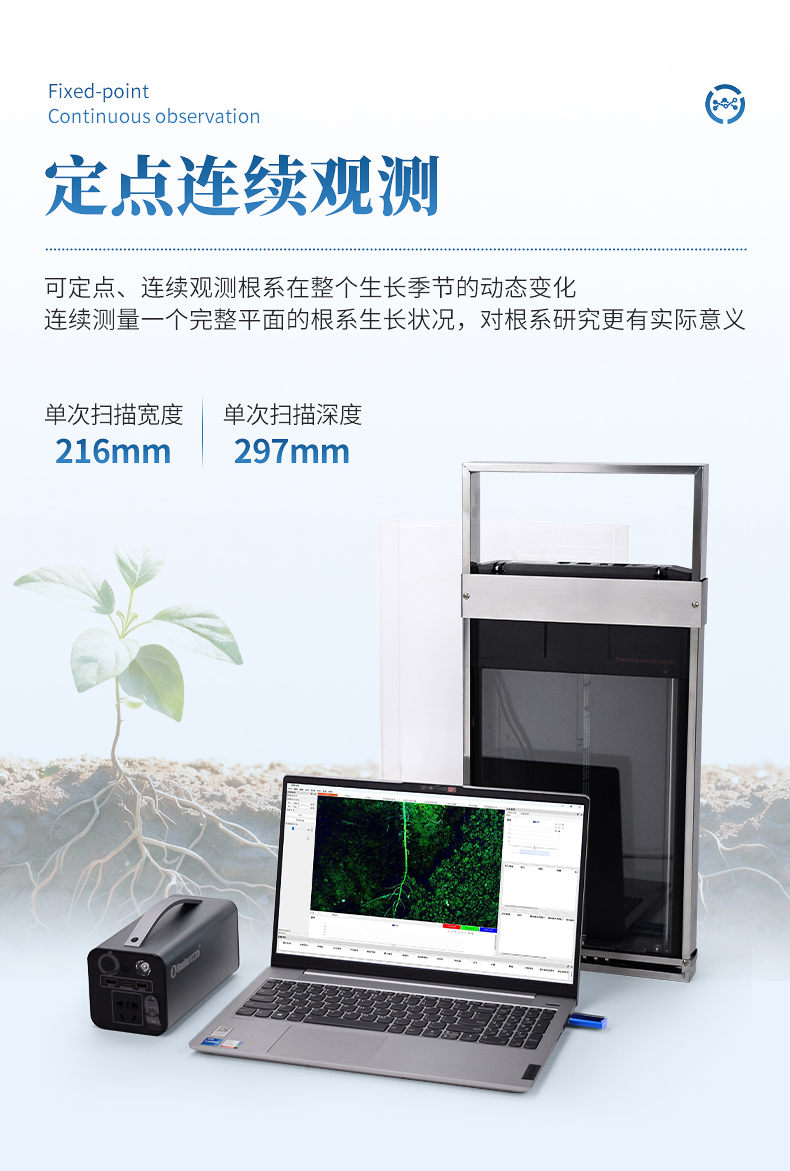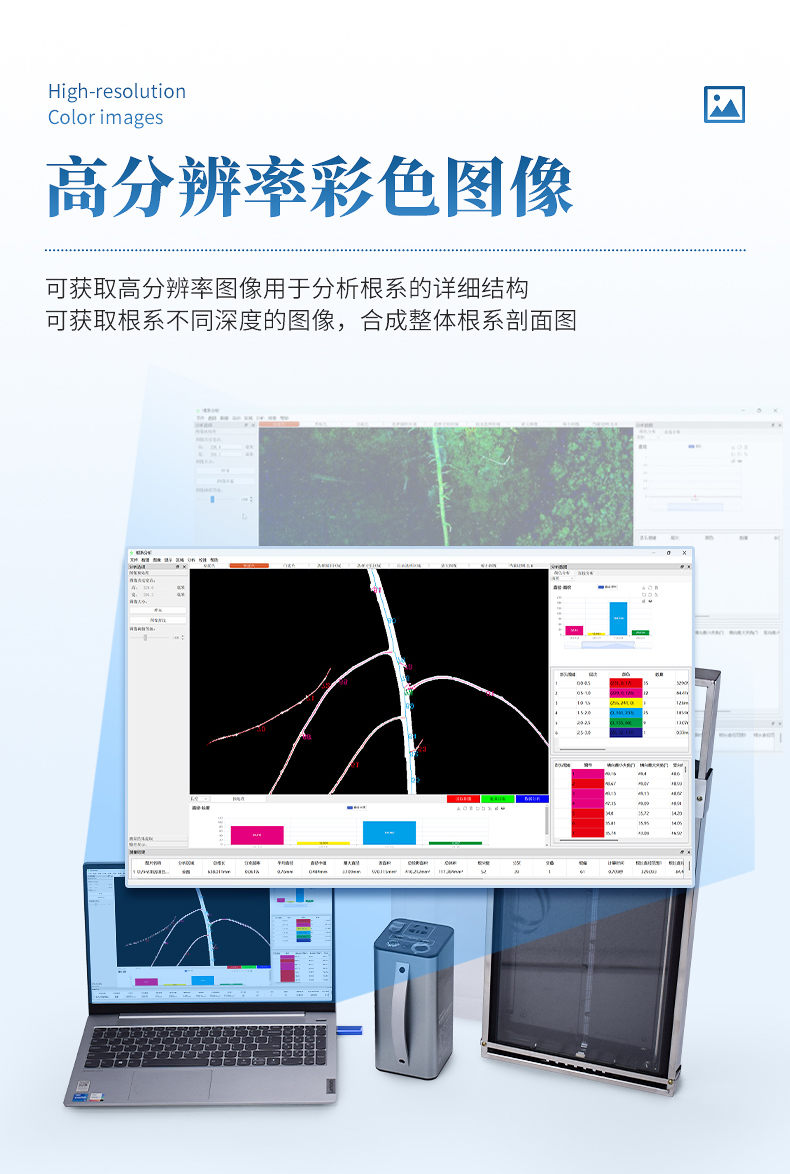 【产品简介】非破坏性原位平面测量;可获取高分辨率彩色图像;可获取根系不同深度的图像,合成整体根系剖面图
