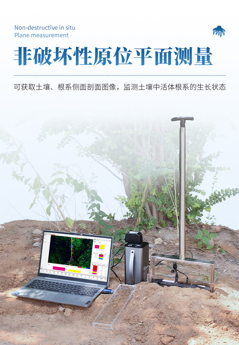 原位根系图像分析系统是一款土壤根系原位平面多层次图像监测仪,可获取土壤、根系侧面剖面图像,监测土壤中活体根系的生长状态,可获取高分辨率图像用于分析根系的详细结构。