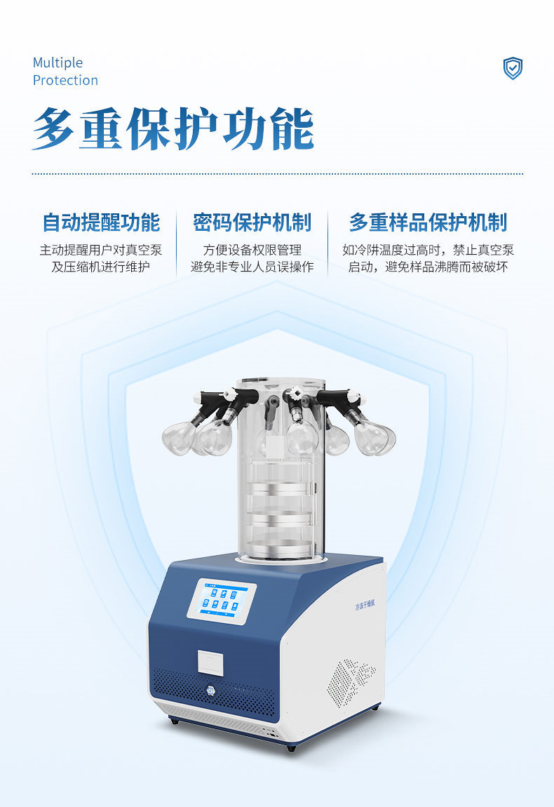 (6) 多重样品保护机制,如冷阱温度过高时,禁止真空泵启动,避免样品沸腾而被破坏。