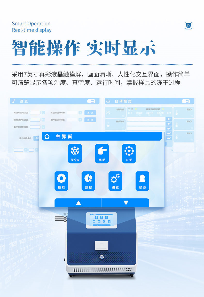 (2) 可清楚显示各项温度、真空度、运行时间,掌握样品的冻干过程。