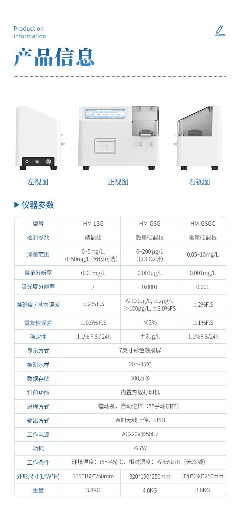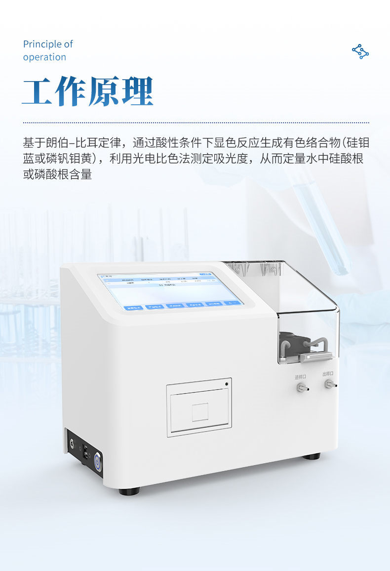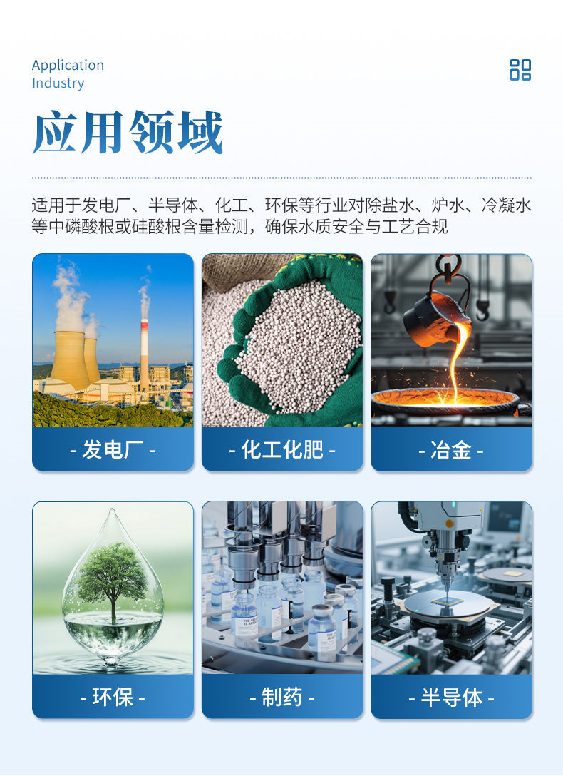 实验室硅酸根分析仪适用于检测样水中常量硅酸根离子的含量。广泛应用于发电厂、化工化肥、冶金、环保、制药、化纤、半导体等行业,适用于除盐水、蒸汽冷凝水、炉水等水中可溶性硅酸根含量的检测分析;参考《GB/T12149-2017工业循环冷却水和锅炉用水中硅的测定》标准设计制造。